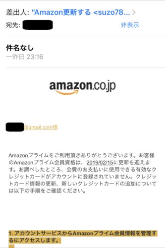 昨夜、”Amazon更新する”を名乗るものから、メールを受信しました。 ☟受信したメールはこちら。 メールの内容は、Amazonプライムの更新日が近づいており、クレジットカード情報を更新してほしいというものであった。 一見それっぽい内容だったが、いくつか怪…